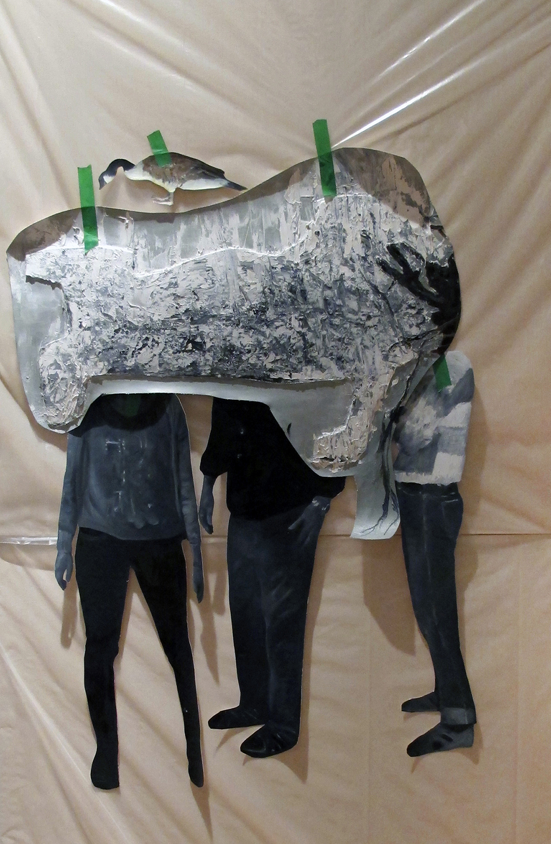 Echange 121x213x3cm photo/toile, huile et acrylique/toile, marouflé/bois 2023
