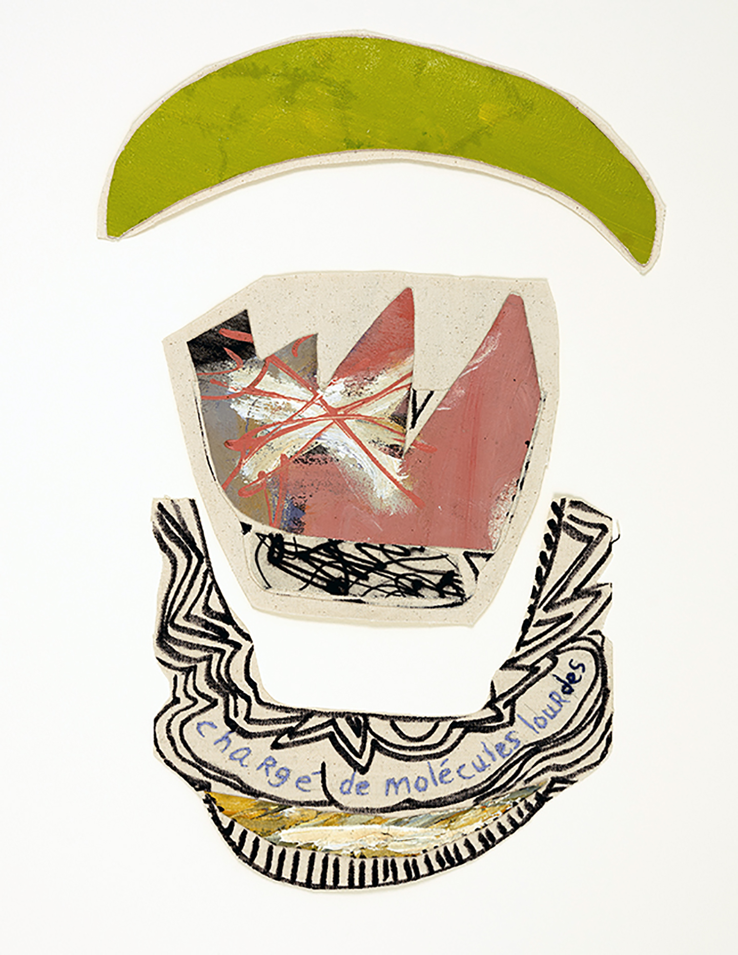 Molécules 46 x 25 cm mixtes/broderies/toile/découpes 2020