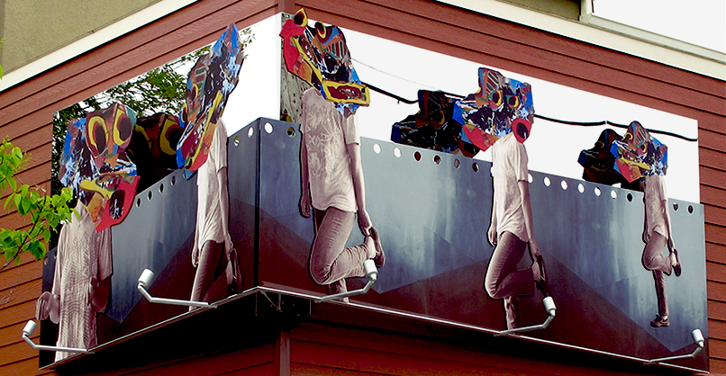 Projet d’art public réalisé pour le Petit Théâtre du Vieux-Noranda, dans le cadre de la Politique d’intégration des arts à l’architecture et à l’environnement du Gouvernement du Québec.